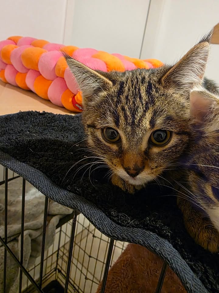 Unsere kleine Lyn ist eine zauberhafte junge Katze, die sich derzeit noch etwas zurückhaltend zeigt. Sie hatte kürzlich einen Schnupfen, von dem sie sich aber gut erholt. Mit etwas Geduld und Ruhe lässt sie sich bereits vorsichtig streicheln und genießt die sanfte Aufmerksamkeit.
