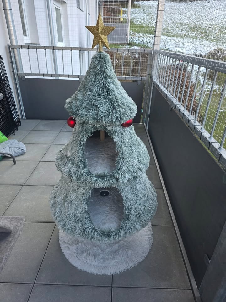 Katzentauglicher Christbaum mit Höhlen und Kletterplatz